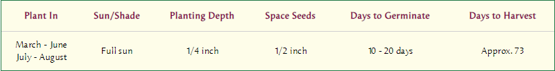 For best sweet flavor, let these pretty, different colored carrots size up and fully mature before harvesting. Enjoy these extra healthy carrots raw as snacks or grated into salads for great eye appeal. Sauté or steam just until tender crisp and serve with a little sweet butter and your favorite fresh chopped herb. Carrots go well with dill, tarragon, chives, cilantro or mint.