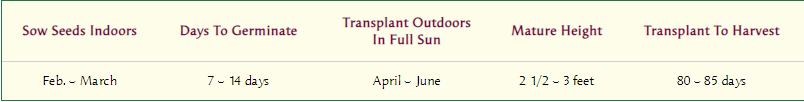 In early spring, start indoors about 6 to 8 weeks before outdoor night temperatures are reliably in the 50-55°F (10-13°C). Sow seeds 1/4 inch deep and 1 inch apart in a container of seed starting mix. Keep moist but not soggy, and very warm, 80°F (27°C). Provide a strong light source until seedlings are ready to plant outside. When seedlings are 2 inches tall, transplant into individual 4 inch pots. Maintain at 70°F (21°C). Feed with half-strength fertilizer every 2 weeks until ready to plant. When nights reach 55°F (13°C), gradually acclimate to outdoor conditions. Plant these vigorous, early bearing vines 3 feet apart into rich soil in full sun.