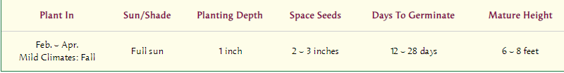 Sweet peas bloom best before the weather gets too hot, so if spring planting, sow as soon as ground can worked. Where summer heat comes on fast, they’ll appreciate a spot with afternoon shade. Anchor supports well as vines will grow heavy with bloom. Protect seedlings from birds, slugs and snails. Mulch and keep well watered. For longest bloom, pick flowers often and keep faded blossoms cut.