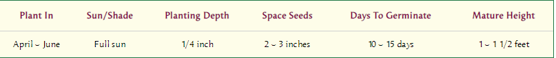 Space seedlings 6 inches apart when large enough to handle.