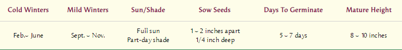 The luscious tangy leaves of Italian arugula, also called rocket salad in England and roquette in France, are easy to grow, carefree and absolutely delicious in salads or sautés. The nutty zip they give to mixtures of lettuce and other greens becomes a taste you’ll crave and wouldn’t do without. Peppery arugula complements the traditional summer tastes of basil and sun-warmed tomatoes, and goes equally well with cool season salads of heartier greens, nuts and pears or apples.