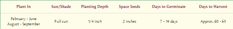 Savor young thinnings in your first spring salads. Then harvest plants by cutting mature heads when they feel firm and well-filled out. Be sure to thin properly and keep evenly moist for sweet tasting, full heads. Pull and discard or compost over-mature plants if they begin to elongate (“bolt”) in hot weather as leaves turn bitter at this stage.