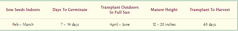In early spring, start indoors about 6 weeks before night temperatures are reliably in the 50-55°F (10-13°C). Sow seeds 1/4 in. deep and 1 in. apart in a container of seed starting mix. Keep moist but not soggy, and very warm, 80°F (27°C). Provide a strong light source until seedlings are ready to plant outside. When seedlings are 2 in. tall, transplant into individual 4-in. pots. Maintain at 70°F (21°C). Feed with half-strength fertilizer every 2 weeks until ready to plant. When night temperatures are reliably in the 55°F (13°C) range, gradually acclimate to outdoor conditions.