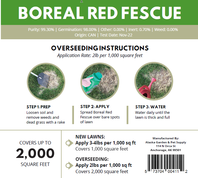 Ingredients: 30% Fava, 30% Austrian Peas, 40% Oats Green manure formula is designed to germinate well in cool Alaskans soil, Builds nitrogen, organic matter, and beneficial microbes, smother weeds...